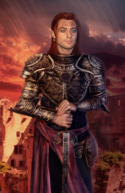 A particularly nasty cleric of Cyric. Created from base body model from Deviant Art, head model the ever beautiful Jude Law. I added A LOT of armour pieces, I mean a tiresome amount to create a whole new one. Most pieces were incredibly pixelated, had to do a lot of renovating. Added new hair, background etc.etc. UPDATE: I removed the shield and gave him a name. His story will continue with a new portrait I made of him.