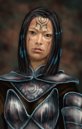 After my little armour experiment with Aribeth I decided to try again to paint an entire portrait. I think it worked out okay, not brilliant yet, her eyes are still a bit weird, and the clothing and background aren't very crisp either. But I am pleased I got this far already, and will be practising more. Painted in photoshop 6.0.