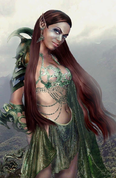 Iana was created from the body of some Japanese actrice, and Jada Pinkett's head. Added several pieces of armour, clothing. Hair created from other source, repainted, and recoloured.