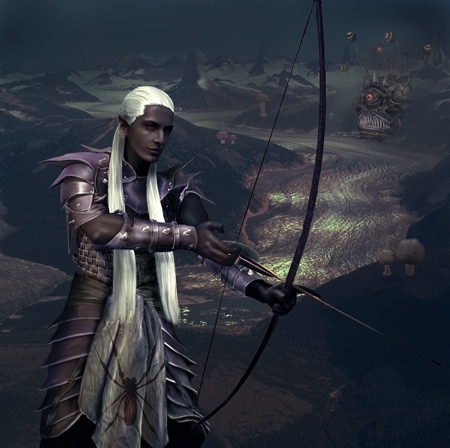 Here is my altered drow version of Uriq. I tried to change a little more than just his hair and skin colour, so I altered the armour somewhat, added new background, and spider thing on clothes. Hope you like this drow version.