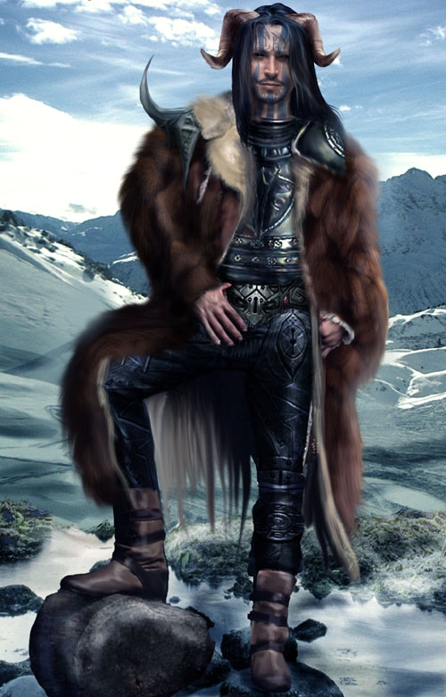 Photomanipulation created from head pic of Johnny Depp, body model from models.com, I myself added fur and reworked it, extended hair, and added armour, background etc. Created in photoshop 6.0.