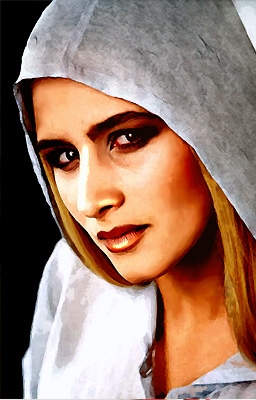 I love this portrait myself :) I imagine she could be a cleric in the service of Sel�ne, or maybe a Wizard... Bard? Dont know, she has many opportunities :)