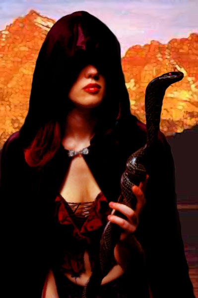 Title Snake Sorceress Author Wanderer Submitted / Updated 06-10-2005 / 06-10-2005 Category Sorcerer Gender Female Format Bioware Standard Description Just a very quick one here - I saw this photo and realised it needed very little doing to it to make it a portrait. All I did was give it a more painted feel and add a background.