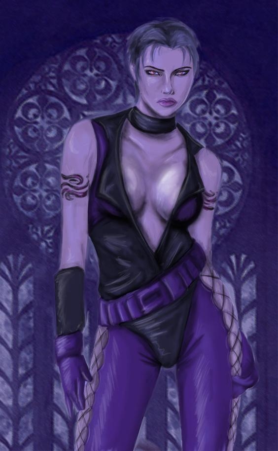 Sheelin, a darkmoon monk(Sorc/Monk) of Shar. Drawn specifically for a character, this portrait would suffice as a thief, assassin or shadowdancer also.