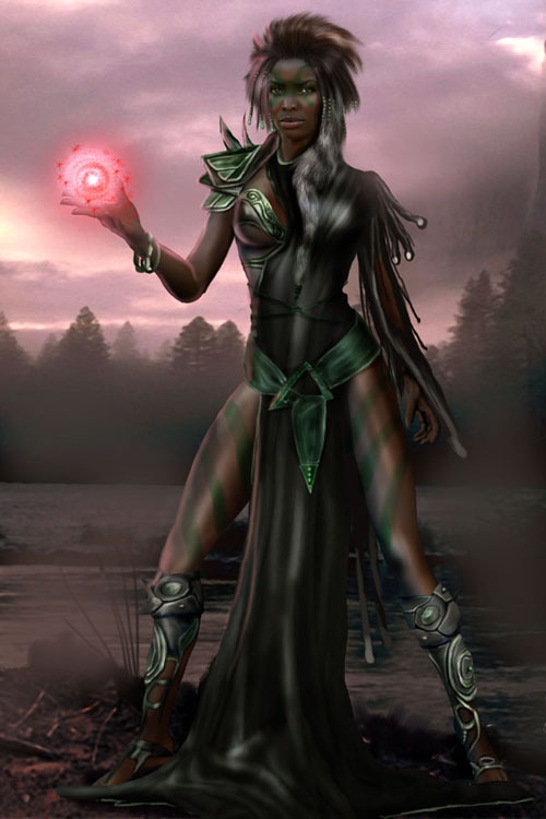 Great stuff, i like the ballance between the character and the background. Only thing that strikes me as in need of work is the loin cloth and where it connects to the right thigh. The cloth looks a bit... "gloopy" :P but then again, she IS a swamp shaman ^_^
