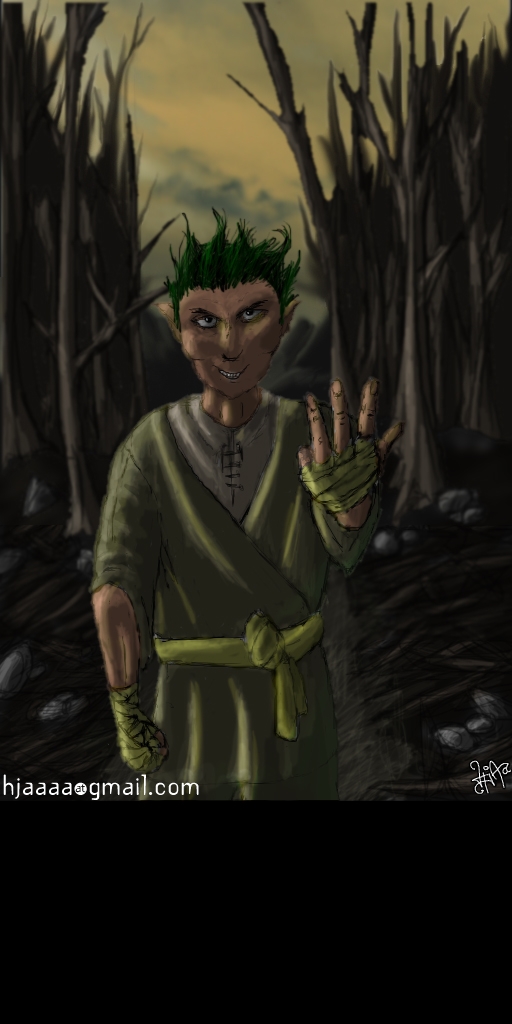 Lomley Lancefinger - The notoriously curious, but not too bright, Ghostwise Halfling. His fists are directed by the creature he calls "The Golden One" who comes to him in his dreams. That's as far as my player team knows about him, so I'm keeping the rest a secret, just for them.