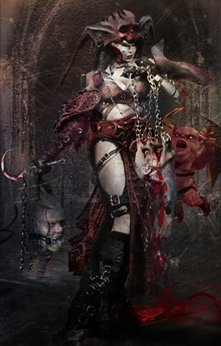 Very nice artwork. It reminds me a bit of Clive Barker's Hellraiser series, particularly the demoness Angelique. I can never quite get the gist of playing an evil rp character, but I adore Clive Barker... well done.