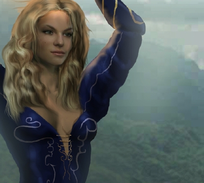 The portrait is simply excellent! :D Though, I guess that her pretty face, and the dark blue dress she is wearing, are more fitting to a sorceress or an evoker. :) _________________________ From out of time and place,