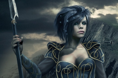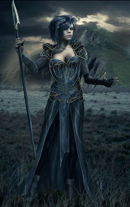 Interesting look and apt background, but she looks a bit odd in the face and below the waist