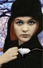 The portrait was done from a picture on a magazine of a bald model posing with the mouse. I removed some of the more modern things like a visible zipper that was on the robe and her watch. I added in hair, the background, and the color since it was originally a sepia colored picture (all beige).
