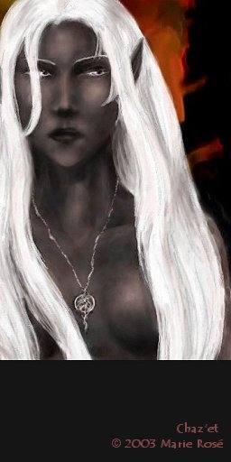 I realize the timing of this is poor given all the recent drow portraits but after two months of working on this painting off and on, now is when I happened to finish. This is Chaz'et, Sword Dancer of Eilistraee. This version of her doesn't have her with her swords, though I did upload a version that does have swords to the Featured Art. And before anyone has a beef about the lack of armor, I painted her as she dresses to worship her goddess, not as she dresses to go fight Evil. ;-) Hope the Vault likes her. Original art.
