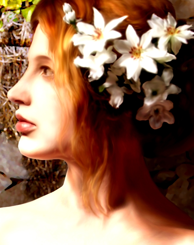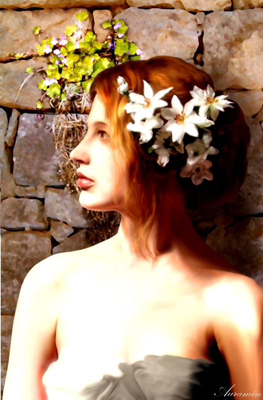 I don't download many portraits these days, but this one caught my eye. It is without a doubt a very sweet work. Back when I used to do portraits for Nwn, I had a hard time getting a photo to look like a painting without ruining any of the details I was trying to bring out. Some of my portraits came out good but some were horrible (in my opinion). I mostly do modules and prefabs today... what astounded me with this painting is that it looks so much like a classical painting; you cannot see the photo over the fantasy, yet none of the detail the artist was going for has been lost. In my vote, I mentioned the emotion this young maiden has about her, and how it is something not a lot of portraits do have. This emotion would not be quite as present if the photo overpowered the work, but it does not. Rather, it is very like you got an artist of the old days, sat him down with this maiden and said, "paint her likeness, but capture her soul as well". I like the Celtic- type air and quaintness the flowers in her hair give it, and I don't so much think "this is a goddess" but "this is a charming maiden" is closer to it. As a noble, she would never be haughty but kind and gentle, perhaps even more than a bit innocent. A princess perhaps, but not a queen. For this true masterpiece of emotion, I granted a full 10! Keep works like this coming, the community needs more paintings of such intensity and vibrancy. Big round of Cheers!