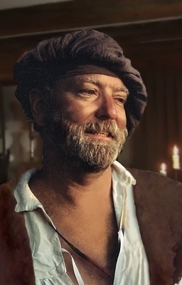 I found this lovely photo in a gallery from some faire, and decided it was a good sorce-pic. What I did: The sunlight was kindof harsh on his white shirt so I gave him a suede vest, the hat however was very dark and 'flat-looking' so I painted in some more light and texture to liven it up. Also added grey hairs to the guy's eyebrows and beard, repainted his face and clothes, added a little texture and gave the pic a new background. I think it may be a very useful portrait in many modules :) A senior villager, a barkeep/innkeep etc. etc.