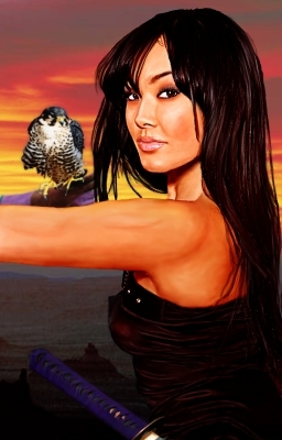 Asian falconer. Painted over photo of Natasha Yi using Gimp. Composed other photos of katana, gauntlet, falcon, and background. First real effort at portraits, besides just resizing, recropping. Comments and advice appreciated.[added version without bird]