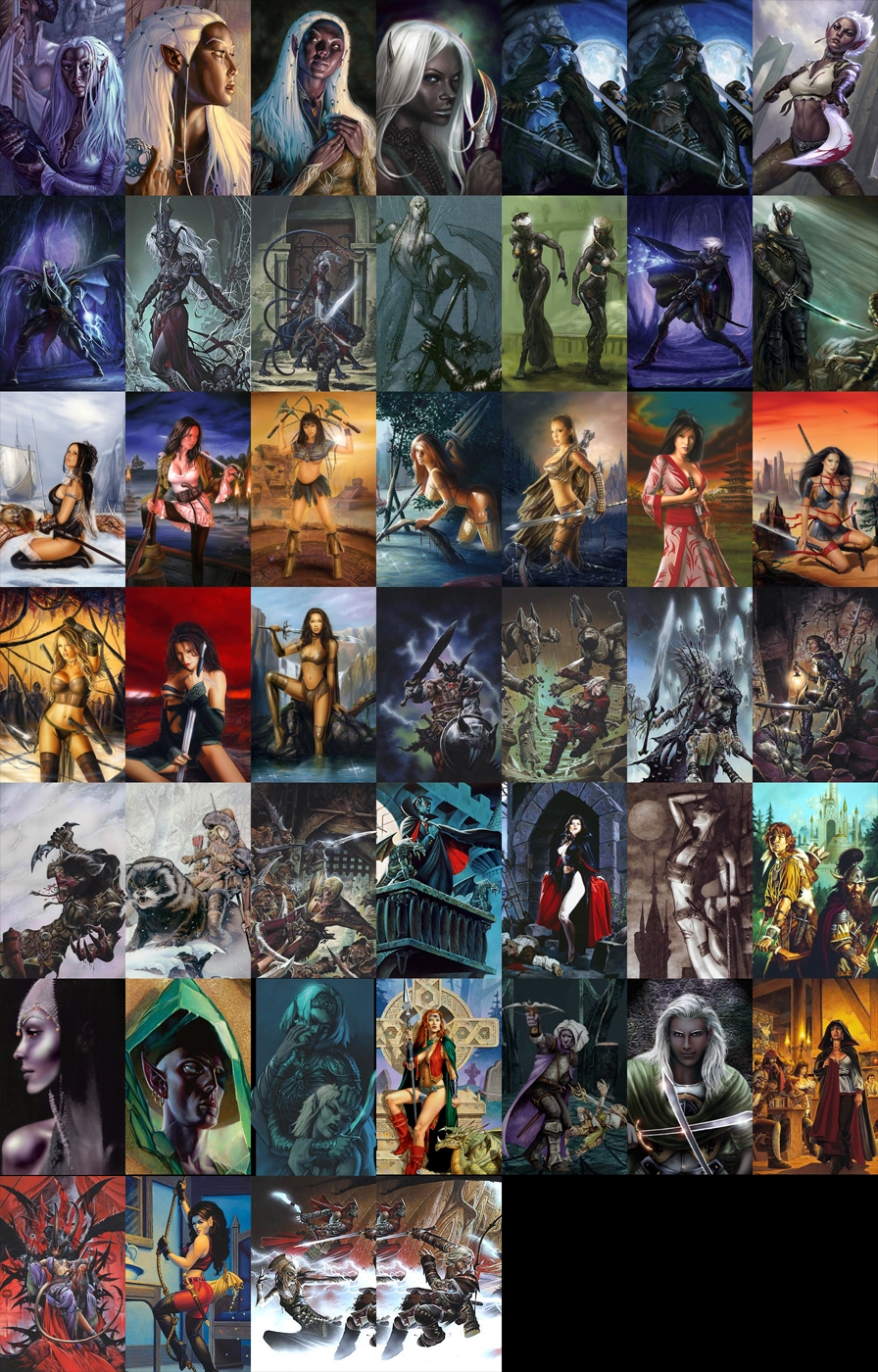 I went and looked, the artist is Lorenzo Sperlonga. Will go add his name to the credits now. Also, I think that for the most part, in the pic with all the portraits, most of the art by the same artist is kept together. I tried to do that mostly, and I tried to keep all the drow art together. Then I added more to the list so its not quite there, but mostly.