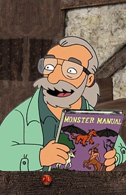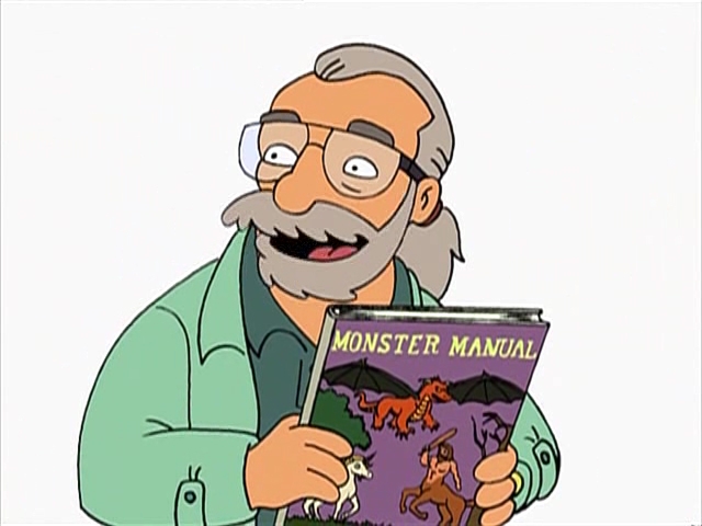 love futurama. loved this episode. i believe the book he carries in this portrait is the actual original monster manual cover?