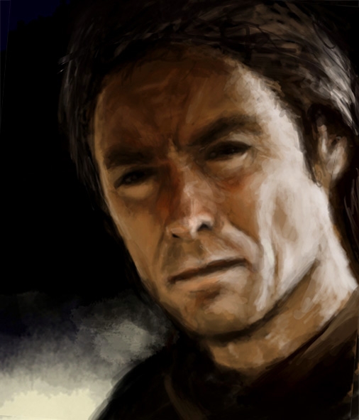 Thanks for your comments. Yes, it is based on a photo of Clint Eastwood, and yes, I did paint it myself. When I say I used photoshop, most people assume that means taking a photo and stylising it, but in fact the method I use is almost exactly the same as oil painting or pencil sketching; you look at a reference photo and you paint what you see, starting with blocks of colour and adding light, shadows, detail and tone wherever it's needed.