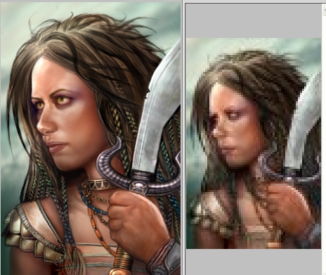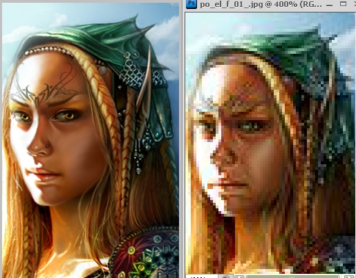 The blond Elf become astonishing beautiful by making her chubby cheeks thinner and adding a bit rouge. Her chin also looks much better. Sad NWN2 use other image sizes.