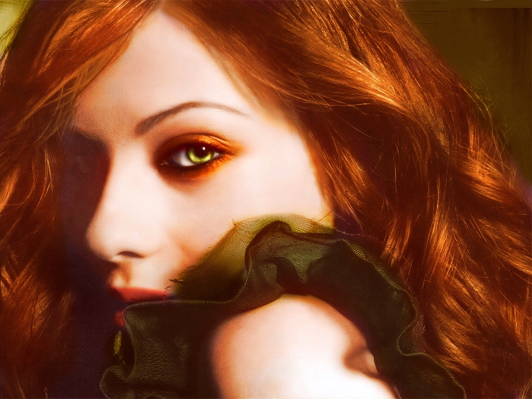 Unfortunately, she doesn't at all have this intensity of color in her eyes or hair, but it's still a really nice artistic piece.