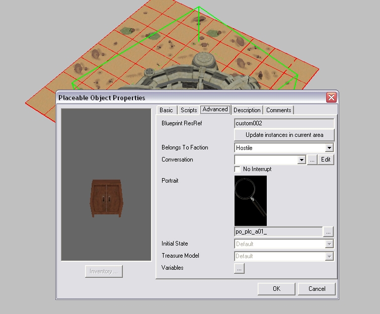 When you create a new placeable blueprint, you've seen that the game give the armoire portrait by default. This kind of annoying with all sci-fi and Modern placeables. Also having portraits for all those placeables would just takes huge load of disk space, better used for something else (like new placeables ;D ). So I came up with this "cheap" alternative, to replace the default portrait with one of a magnifying glass. Like a "look at details" action. Which is much better than this out of place armoire portrait.