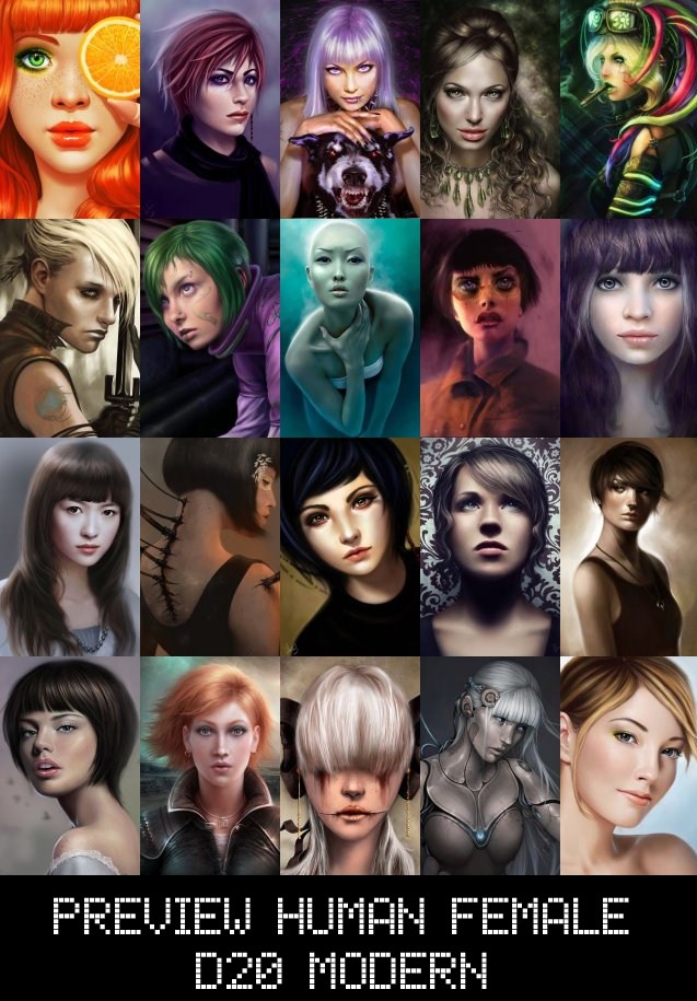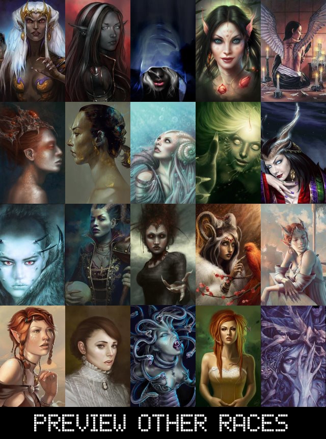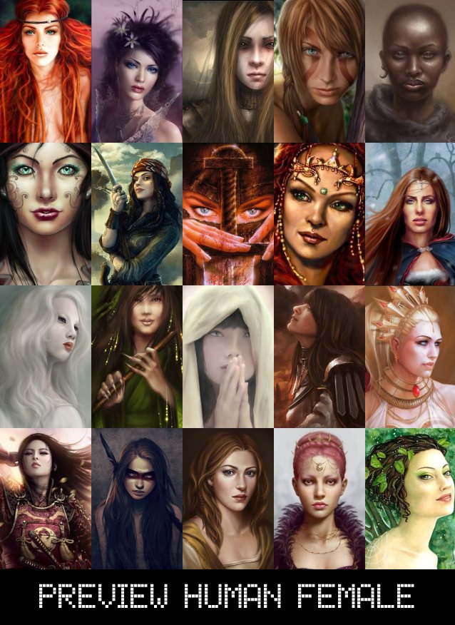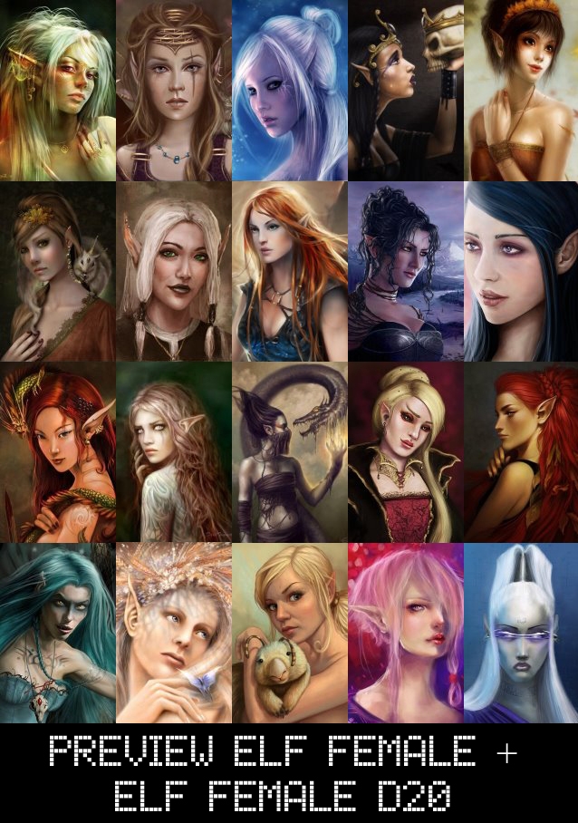 The pack contains 374 portraits all together, mostly human and elf, but there are some for other races, such as as Tiefling or Yuan Ti, in there as well.