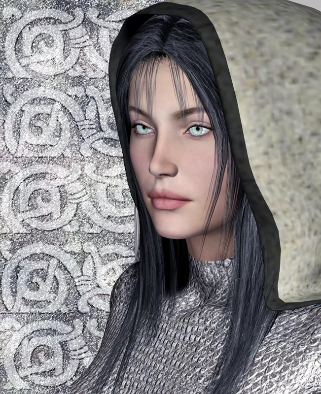 One of the things that can help give poser pictures a little more life is to avoid the "thousand-yard-stare" I would love to see those jade-green eyes looking at me. (I actually know a guy who has eyes that color...) Also where her chainmail meets the neck, you will need to add some shadow and edge painting so it looks like the chain is actually worn on top of her skin rather than just painted on there.