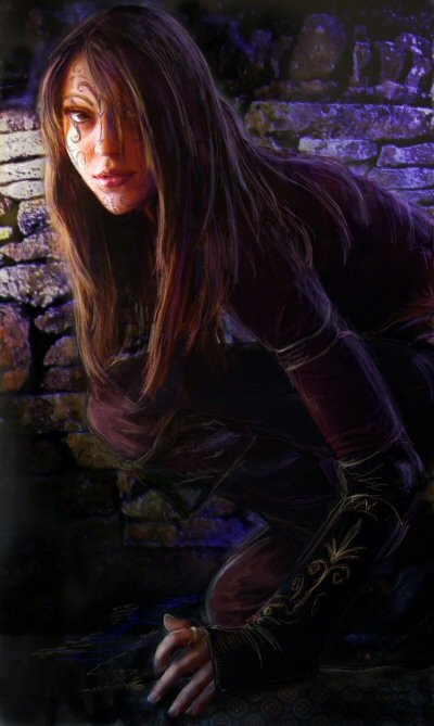 Heh... thanks for the positive comments. The reason this was so quick is because it was photos--one for her and one for the stone wall background (which was actually originally in broad daylight, so I had to repaint that a bit.) But even so, photos go so much faster than having to render the whole thing myself! After that I didn't have to paint very much, just put the lighting in the right place, and add a few details like the tatoos, and the slight changes to the clothing. I pretty much focused the whole piece around lighting the figure, so that is where I spent most of the time. I had a lot of fun doing the blue backlight, and adding blues and red and purples to her hair arm and face. Shadows can be fun when you use lots of colors. ;-)