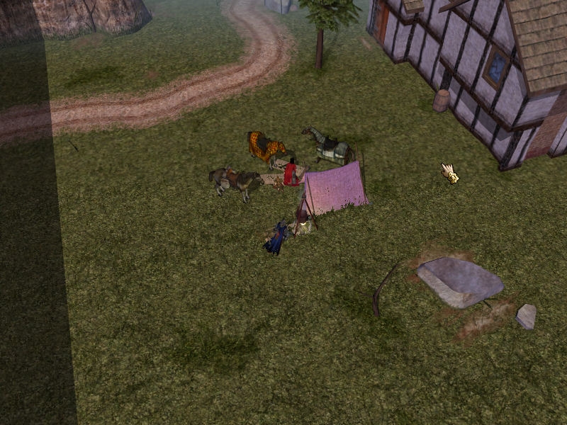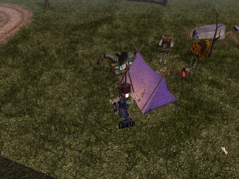 After jumping the party will dismount and the camping cutscene will start. If the area is flagged as hazardous and an encounter is triggered, the horses will panic and flee. War horses (Being immune to fear) will stand and fight with the party. This feature can be disabled by setting this line **SetLocalInt(OBJECT_SELF, "Horse_Scatter",1);** in the db_mod_load script to 0.
