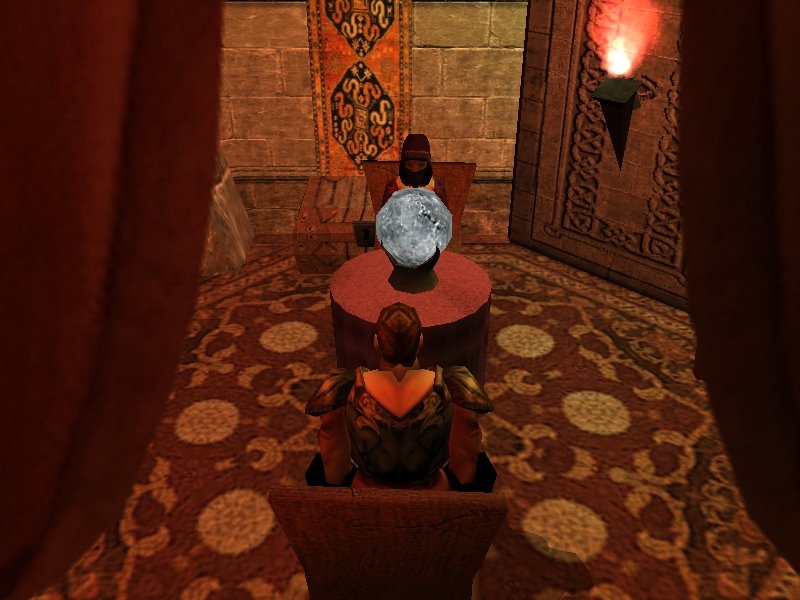 An indoor marketplace, inspired by pictures of real-world souks and bazaars. I was going for a place with a distinctly non-European, exotic feel, a place where merchants from all over the world could come to trade their goods, hence the presence of both Japanese lanterns and Persian carpets. I've also included a bunch of NPCs to act as merchants. However, there are no actual merchant stores in this prefab, since you'll want to tailor that for your own needs. Also, few of them have any conversation at all, and those that do are because I needed to include a script in the first line that keeps them from standing up when they talk. The module uses five simple scripts that control sitting and not getting up in a few places. You can always remove them if you don't want anyone sitting, but otherwise you shouldn't have to do anything with them. All of the containers are set to static, so if you want any of them to be useable, you'll have to set that yourself. Also, this prefab uses a whole lot of placeables, which might be hard on some systems. Finally, I created a curtained-in area for the fortune-teller in the corner. It may be a irksome to maneuver through, so you may want to remove the entryway curtain to make things easier.