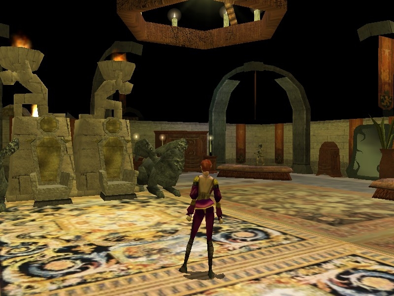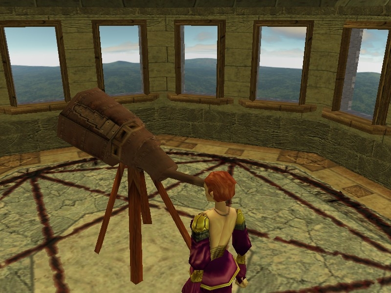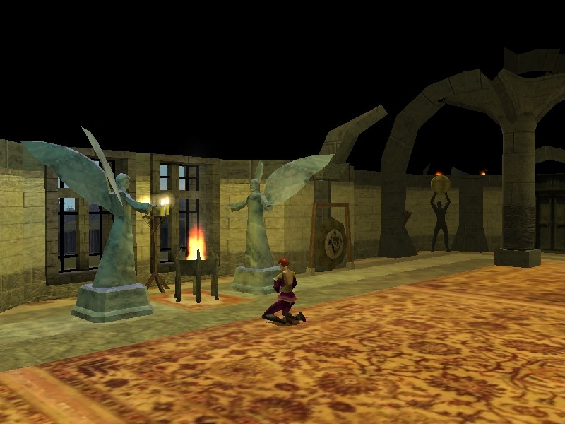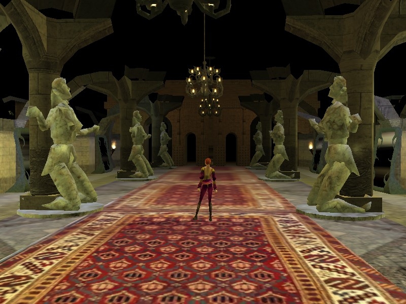 The map itself was mostly based on the Lycaeum as it looked in Ultima 4, but it also contains elements from Ultima 5, such as the Flame chamber, as well as ideas that are of my own imagining. My *primary* idea for the Lycaeum was to make it a Versailles-like palace, so it has a sort of French decor and atmosphere to it. I've also included stairs down that can be linked to lower levels, crypts, or even dungeons if desired by the individual module builder. All in all, this prefab is the definitive Lycaeum for Nwn.