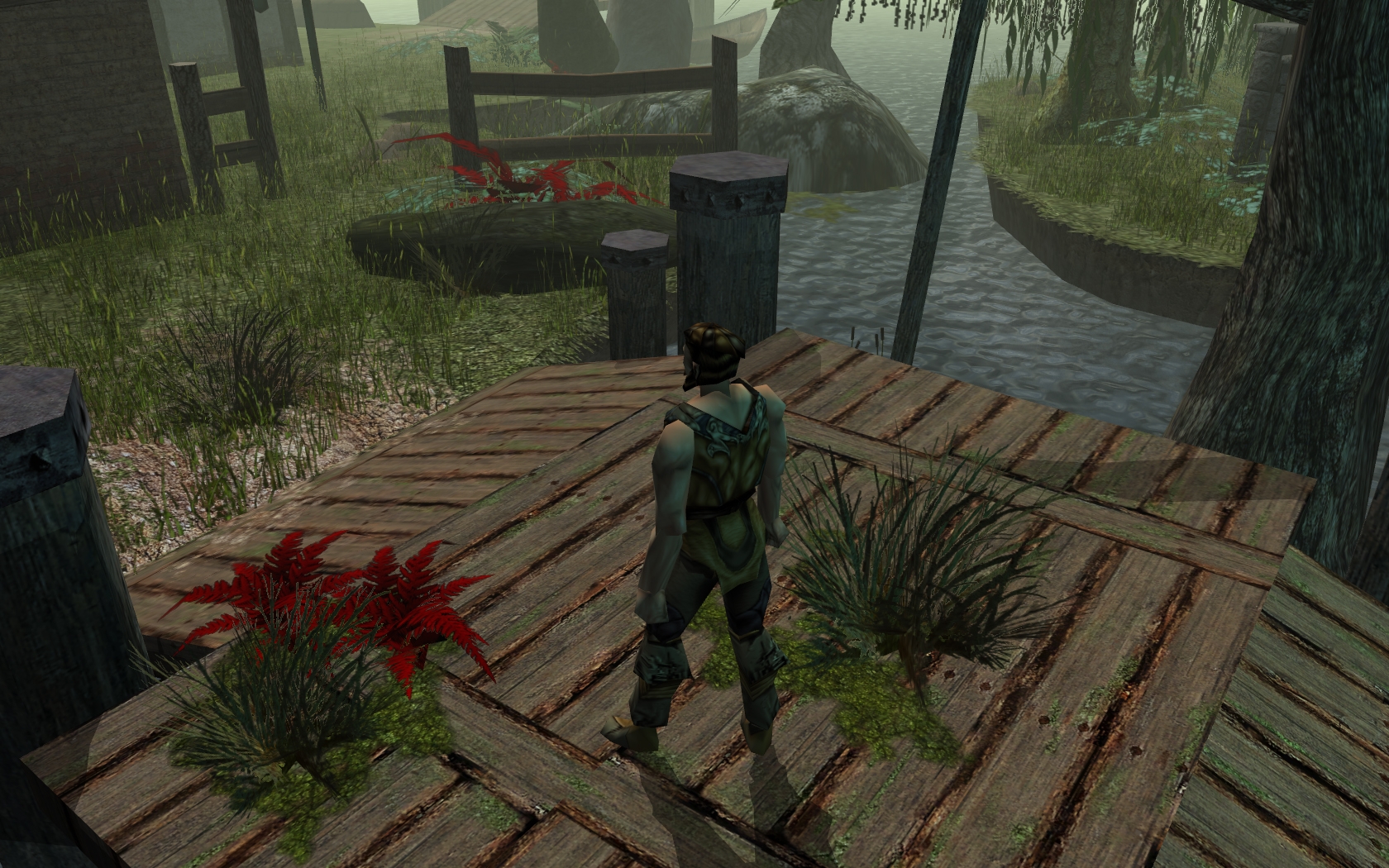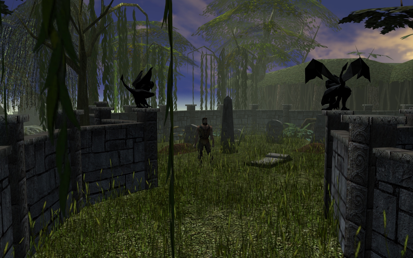 I just stumbled upon this fantastic area today, and I must say it is very well designed. Moody is the right word for it, as a small town in a swamp should be, and the cemetary has an almost claustrophobic air to it. If it had zombies, you'd want to flee lest they cut off your only way out. ;) It goes perfectly with your earlier work, the Creeping Marsh, which was of a similarly high quality of design.