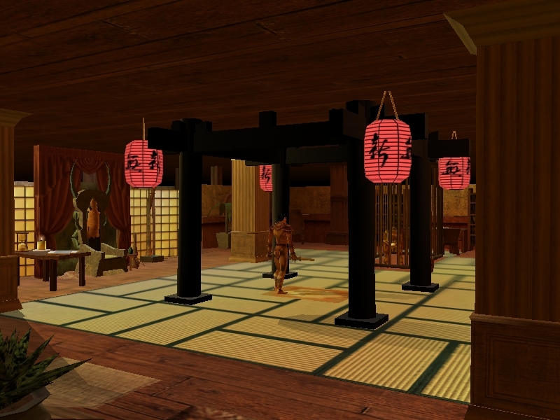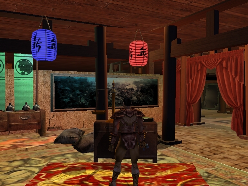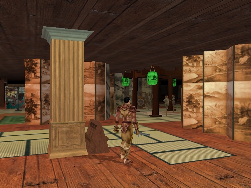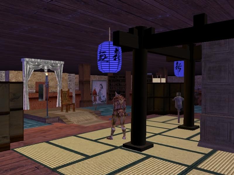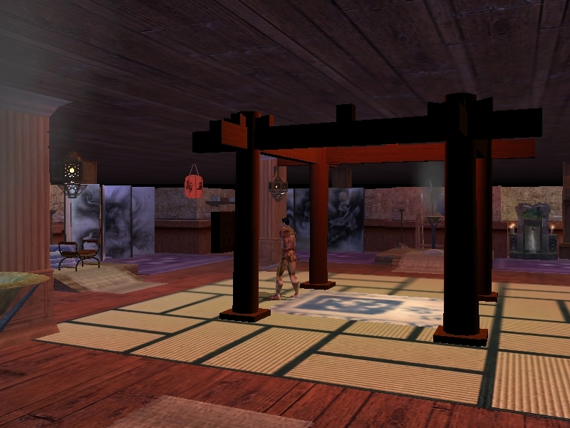 The only less-than-perfect things I could find were that in the Pagoda of Five Gods area, the 2 "House, 2 Story" placeables could be a bit more recessed so as not to disrupt the brickwork on the side of the storage house and some (very, very few) of your carpets seem to need a .1 Z-axis bump up to prevent cross-hatching from the player shadow. For example, the effect I saw when standing on the center rug of the Palace of the Tiger seemed to be cured by bumping the Tatami Mat, Large to .01 Z and the Persian Star Carpet to .02 Z. Thanks again!