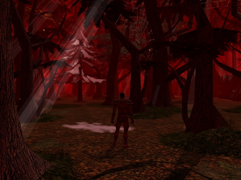 This new prefab was inspired by a very profound dream I recently had, in which I met a glowing, white-skinned goddess of wisdom while I was lost in a blood-red forest known in the dream as the Witches' Wood. These are very ancient symbols: snow white and blood red... and are very much a part of the human psyche. Now, you too can wander through this surreal, spiritual landscape, in search of not just wisdom but high adventure! :) Perfect for an unusual forest, another plane, or a dreamscape. Several unique visual effects were used to create an unforgettable environment. Inspiring goddesses not included. Feel free to make your own memorable encounters in this forest.