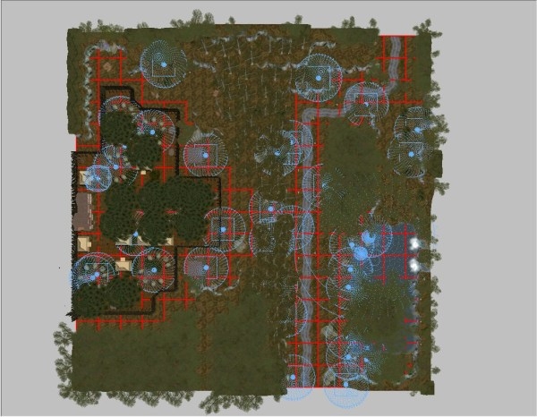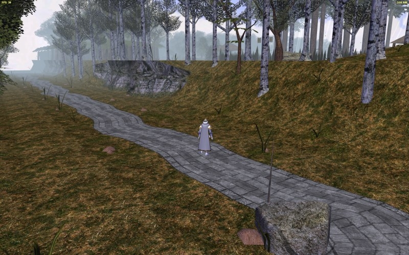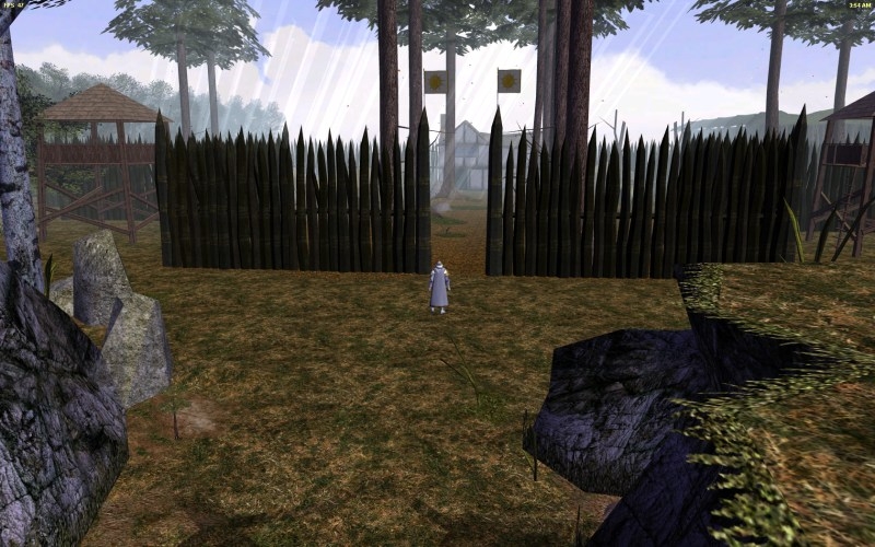 It has a road running north/south, with a garrison/fort to the west of the road, behind a stand of birch trees. It also has 2 cave entrances. One in the NW corner, and one via placeable fissure in the NE corner.