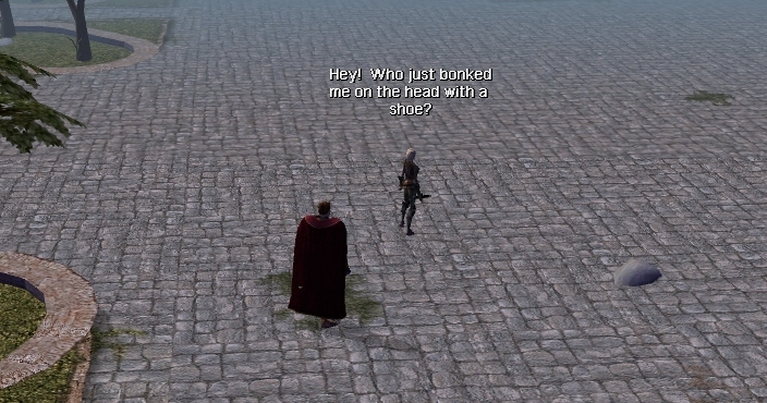 A shoe to throw at your companions, collegues, and total strangers. Will result in several possible whines or a possible knockdown. Except in combat, where it's pretty much useless.