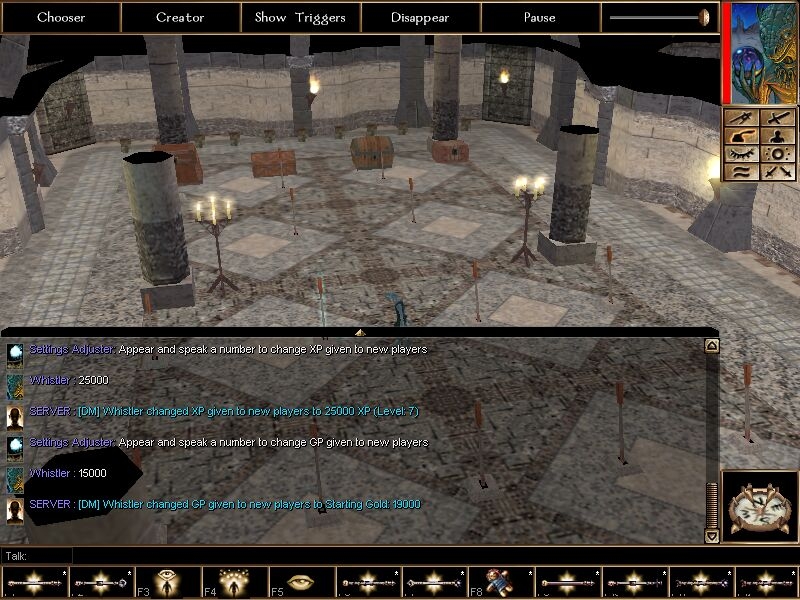 FEATURES - 1 area, 1 script. - Can specify the starting XP, GP, items, journal entries and newbie merchant settings. - Can specify starting items for DMs and players (can even give out different items based on starting class). - All of the settings can be changed live or can be changed via the script. - Strips new players on entry (prevents cheating). - Has newbie merchants with 237 non-magical armor designs and 101 non-magical weapon designs. - Has three 'blank' rooms that you can use for anything you want. (ie: rest system tutorials, etc) - It is recommended for server vault games, but should be useful for local vault games as well. - It can be used with single player modules (just add an area transition to where the rest of the module begins).