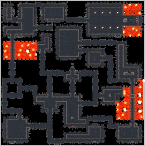 This is a 21x21 dungeon, with many corridors and rooms, from starting point, at the middle, to south it will lead to a chest where is suposed to have a key inside a chest, to east will lead to the ending chamber full of treasures. This is a plain area, with now encounters or scripts. Use it freely at your module.