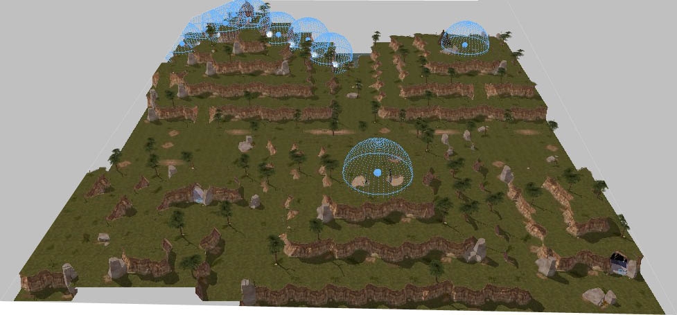 16x16 Mountainous Area, one peak has a mysterious house at the top with waterfalls cascading down both side of that mountain, another has two magic crystals atop another peak with a smoldering fire indicating someone was there recently. Another has a treehollow and older cemetary atop it, and did I mention the two hidden caves? :) Mod Creators/DM's use as you need.