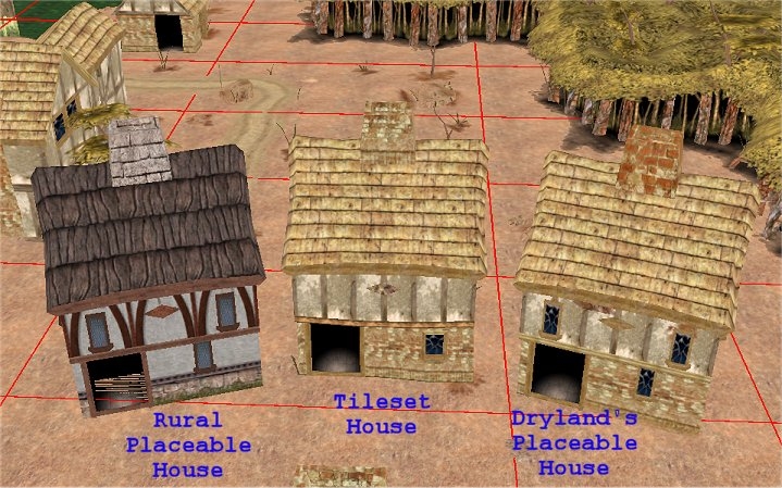 I am creating a module that uses the dryland's tileset by Baronrage and wanted a placeable house that matched the tileset. I used Ice-Child's placeable house and re-textured it using the exiting textures in the Dryland's Tileset. REQUIRED: Drylands Tileset - my zip file does not contain the textures, and the instructions are built around adding this to the Drylands HAK file (or a hak file with the corresponding content). Baronrage Drylands (REQ) URL: http://nwvault.ign.com/Files/hakpacks/data/1027102264670.shtml Ice-Child Placeable House (Not REQ) URL: http://nwvault.ign.com/Files/hakpacks/data/1034423138212.shtml