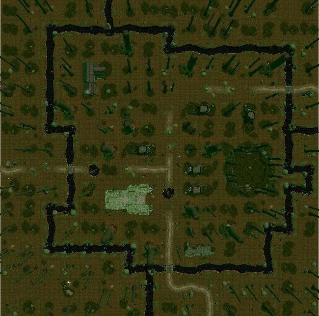 Forest Town surrounded by a stream with roads heading South, East, and West. Has a temple near the center, a lodge in one of the more 'isolated' corners, a camp on the outskirts, bridges going over the stream, a grove with a mysterious looking/sounding stone in the center, 5 tree structures for homes/shops/whatever, a ruined tower, and a greenish ambient light that works with the fog to make a deep forest-type look. --Doors & Sounds Supported in this area-- All the doors are supported, and all the sounds that SHOULD be needed are as well. All along the stream you'll be able to hear it, the bridges have some twig snaps, the camp has campfire sounds, songbirds sing in areas of the town, sometimes owls, it's all there. Change as you see fit. Thanks, Super Midget