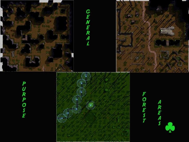 3 general purpose forest areas, one is a 'mesa style' area with twisting cliffs throughout most of the area, and one is a magical forest area with green light diffusion to represent a 'deep dense magical' ambiance. Use as you need, area 1 is 12x12, the other two are 16x16.