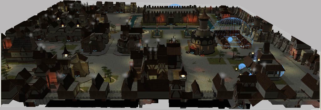 Another generic style city, with a good castle, cloaktower, marketplace, neutral style temple, various shops, and scenery added, sshot is a night shot. Use as needed. Doors already added throughout the city.