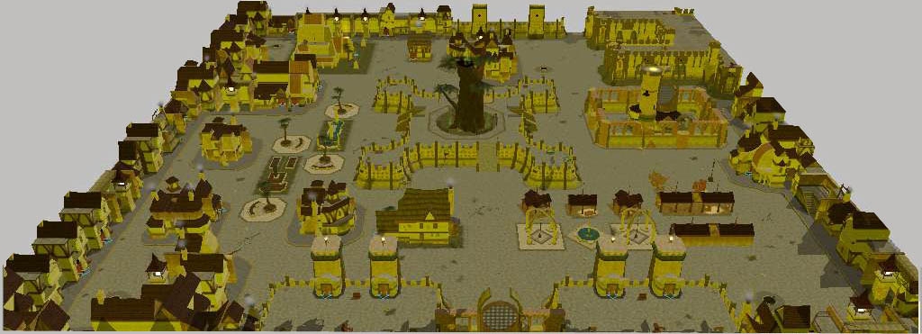 16x16 Good City or 'Golden City' (changed the light ambiance to give it that 'bathed in golden light'-look). Equiped with a castle, wizards tower, 4 sewer ins/outs, market area, gardens, a center square around a mighty-magic tree, and various eye-candy. Also all doors already added in. Use as you need.