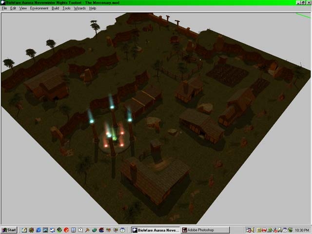 This is a prefabricated area intended to be the base of opereations for a mercenary band called Dalgon's Teeth. The name pops up in a few places, most of which are item descriptions. I placed a few people around as demonstartions of how they look, and I am quite pleased with some of the people. The only NPC with a conversation is the merchant, and I included responses for both intelligent and unintelligent characters. He will sell the equipment that you can currently see on display, as well as a few items you can't. (variants of the 2 wizards' staves, a few rings, and the warriors' helmets.) I included some more info in the attached readme file, and I only wish a little feedback so I can make some more stuff that might be desired. The glowing altar area is intended to be a respawn portal, but I can't script so I left that to the module maker.