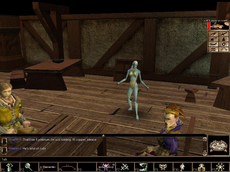This prefab area and scripts provides a module developer with the ability to create NPC's who DANCE in their development areas. It is intended as a 'color' scenery aid. Simply import the included ERF file to include five scripts and a character template for a dancer, then create NPC dancers, tie in the scripts to their event methods, and place them. A Demo module (a Tavern) is included that shows a dancer performing one of the four available dance methods. ERF File and full instructions (tinydancer_readme.txt) included. Dancers can choose their moves at random or in a choreographed format. Supports artistic, 'bawdy', and improvisational dance styles. THIS MOD REQUIRES HORDES OF THE UNDERDARK.