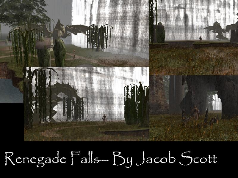 This is a Prefab for a marvellous, atmospheric, jungle Waterfall, and in my opinion, the sheer size and scale, is able to outmatch any HAK Tilesets, and that's right, this uses NO HAK other than CEP! I spent quite a while spiffing it up, so I really hope people enjoy it. Feel free to use it (that's what we put it here for, right?) in your mod, just give me some credit. To import it, extract the RenegadeFalls.erf to your ERF folder in the NWN drive, and then in your mod, go to File-> Import-> and then the Falls will load into your world! PLEASE post all opinions and feedback, good or bad, and feel free to vote, rate it, and have fun with it! PEACE OUT!!! :)