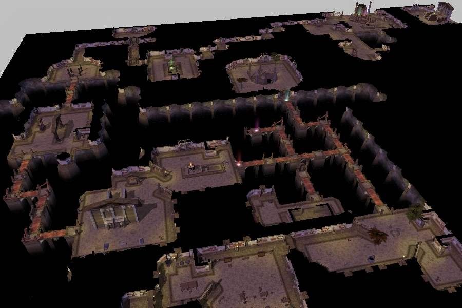 The Inlands is the favorite area of gamers in JOURNEY OF A THOUSAND MILES. Foggy, creepy, with groaning bridges that link the different parts of the city and triggers included to some areas. A Town Square, Tavern, Temple, a few placeables, sounds, one big down stairway, one big up stairway, and a few small doorways are included for your imagination.