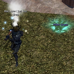 Inhaling Witch Grass smoke will apply the following effects to the smoker: increase Wisdom by 1, decrease Intelligence by 1, increase Spot and Listen by 5 each, decrease movement speed by 10%. These effects last approximately 1 hour (game time). If more Witch Grass is smoked before these effects wear off, it will only slow the smoker down further. Trying to harvest a plant with a torch in your hand will burn the whole plant, affecting every player or creature within 10 feet.