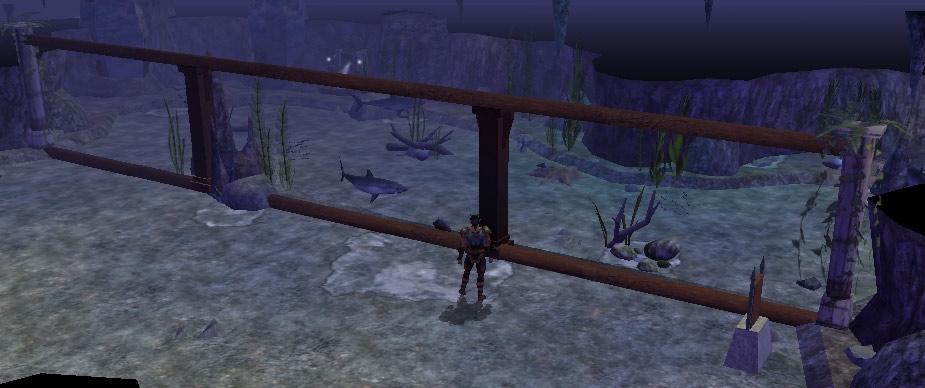 While this is neat and all, perhaps someone will come up with tinted glass placeables similar to what DLA did with display cases. All you need is wall and cieling sections and you're all set. You could put an aquarium anywhere.