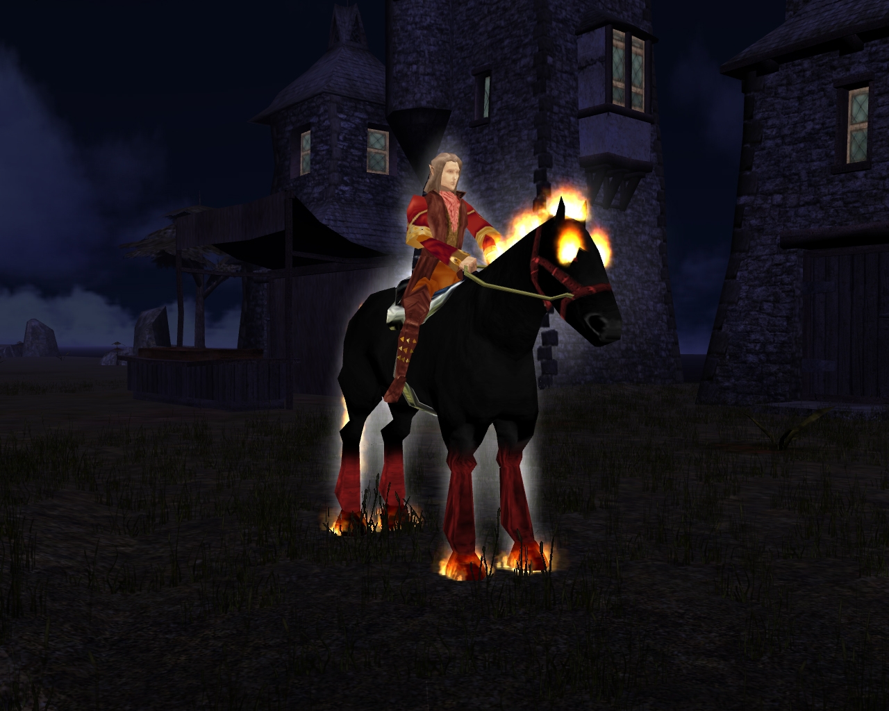 Module and erfs of the horses, scripts and all -- includes Saddlebag with persistant storage accessed from the horse conversation menu -- you must not be mounted to use the saddlebags -- also flying (flying for PCs, not for horses *grin*)